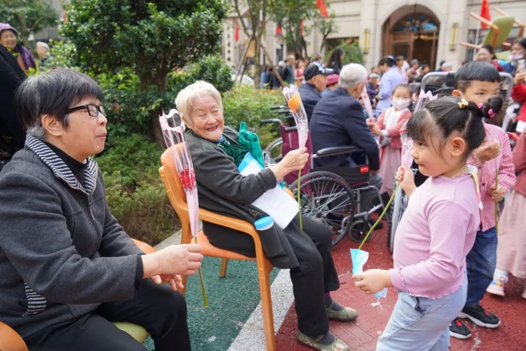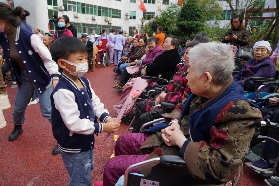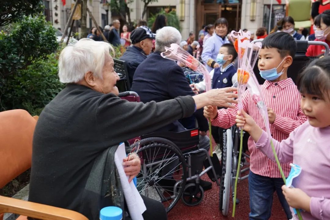 小朋友向老人獻(xiàn)花