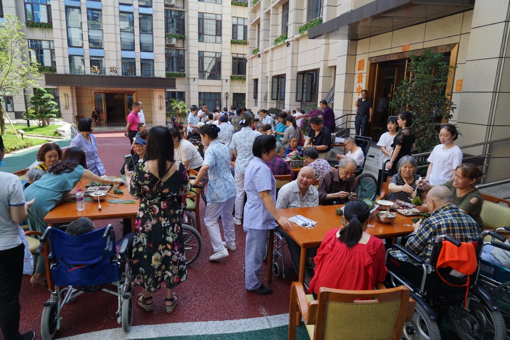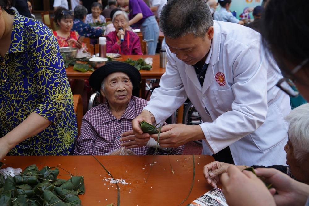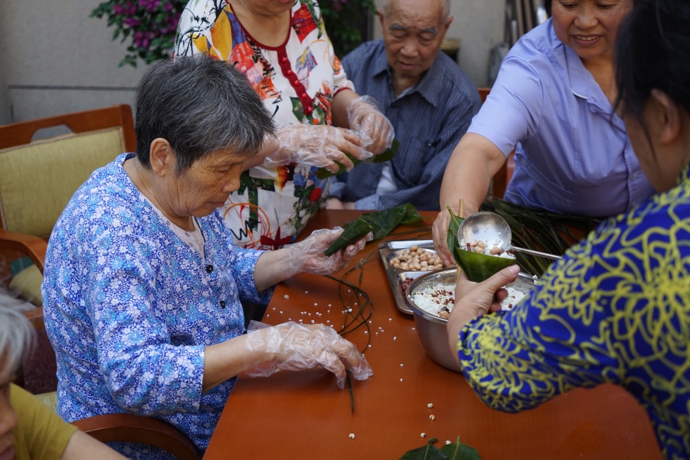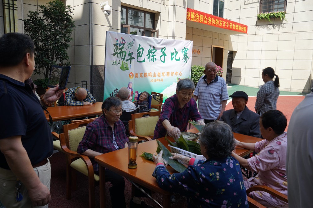 老人們自己動(dòng)手包粽子迎端午,捧著香噴噴的粽子,老人們臉上洋溢著幸福的笑容。饒碧靜婆婆說(shuō):“每逢節(jié)日鶴鳴山老年養(yǎng)護(hù)中心都會(huì)舉辦一些活動(dòng)陪我們過(guò)節(jié),我們很開(kāi)心、很快樂(lè),希望鶴鳴山老年養(yǎng)護(hù)中心越辦越好?!别B(yǎng)護(hù)中心空氣中彌漫著粽子的芳香,耳畔不時(shí)傳來(lái)老人們幸福的笑聲。